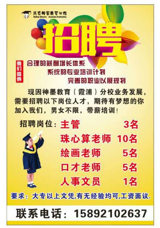 要求:普通話有2甲,有愛心,耐心,喜歡孩子,喜歡從事教育工作,性格活潑開朗,有責(zé)任感及奉獻(xiàn)精神.接受能力、抗壓能力強(qiáng)。
